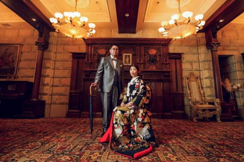 重厚なヨーロッパの調度品と艶やかな色打掛が織りなす「和モダン」なスタイルは、まるで映画のワンシーンのように美しく、他にはない洗練されたお写真を残していただけます!