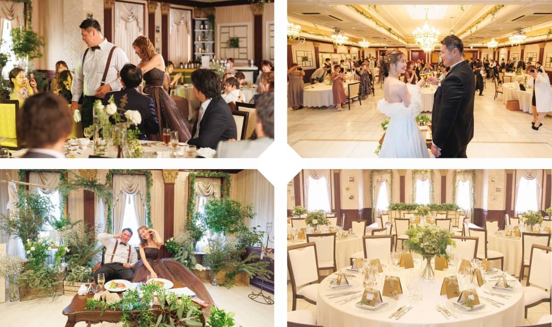大勢のゲストを迎えることができる大空間に、ゴールドとホワイトを基調にした上質なインテリアが丁寧に施されています。